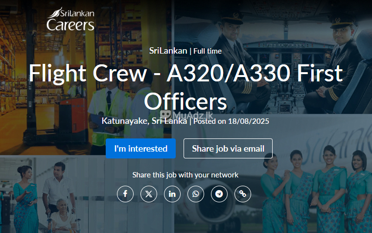 TAKE FLIGHT WITH SRILANKAN AIRLINES Unfurl your wings and take to the skies with Sri Lankan Airlines, the pride of Sri Lanka. Become a master of the skies and a global ambassador for our Paradise Island, showcasing its exotic beauty and hospitality to travelers around the world. Join a dynamic and ever-expanding national carrier and elevate your career to new heights. At Sri Lankan Airlines, we value your talent, dedication, and passion for aviation. A320/330 First Officers